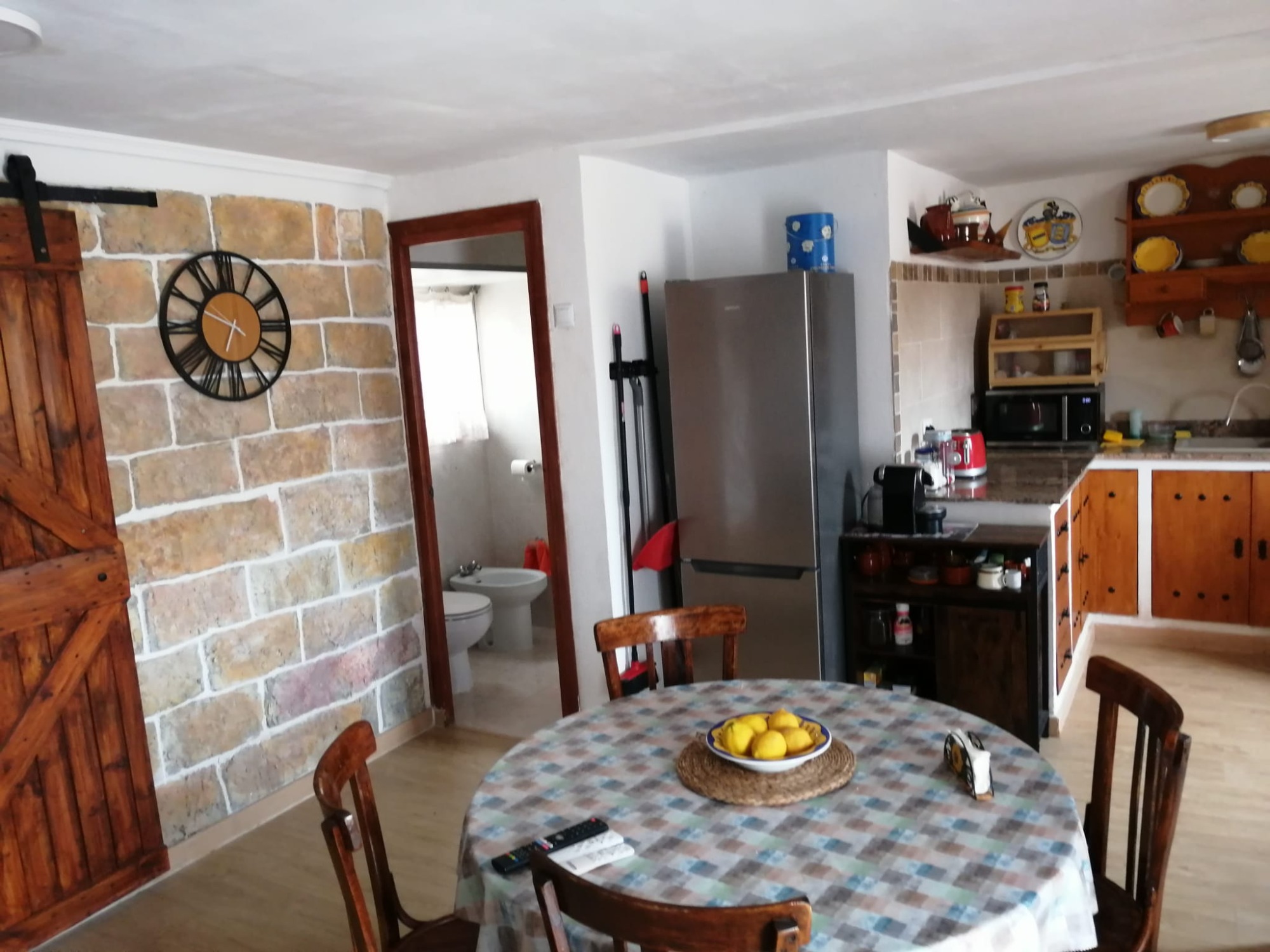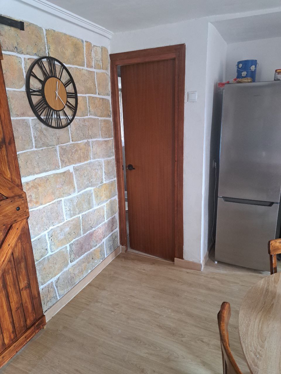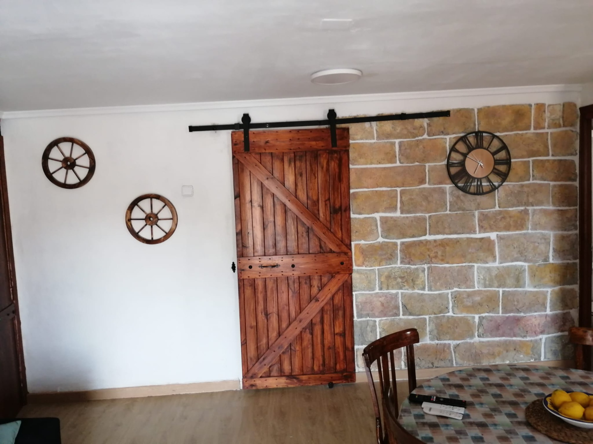 Una puerta corredera de granero dá acceso al comedor y resto de la casa.