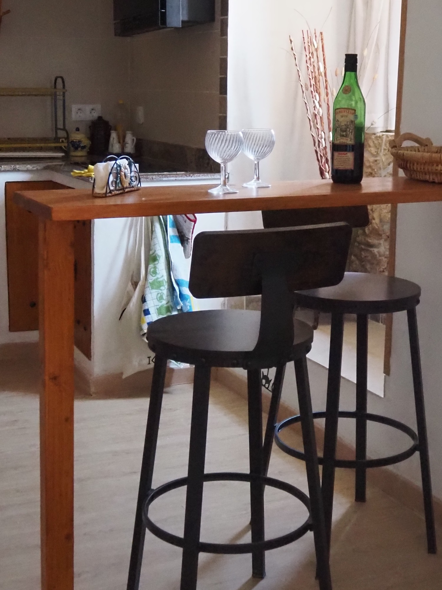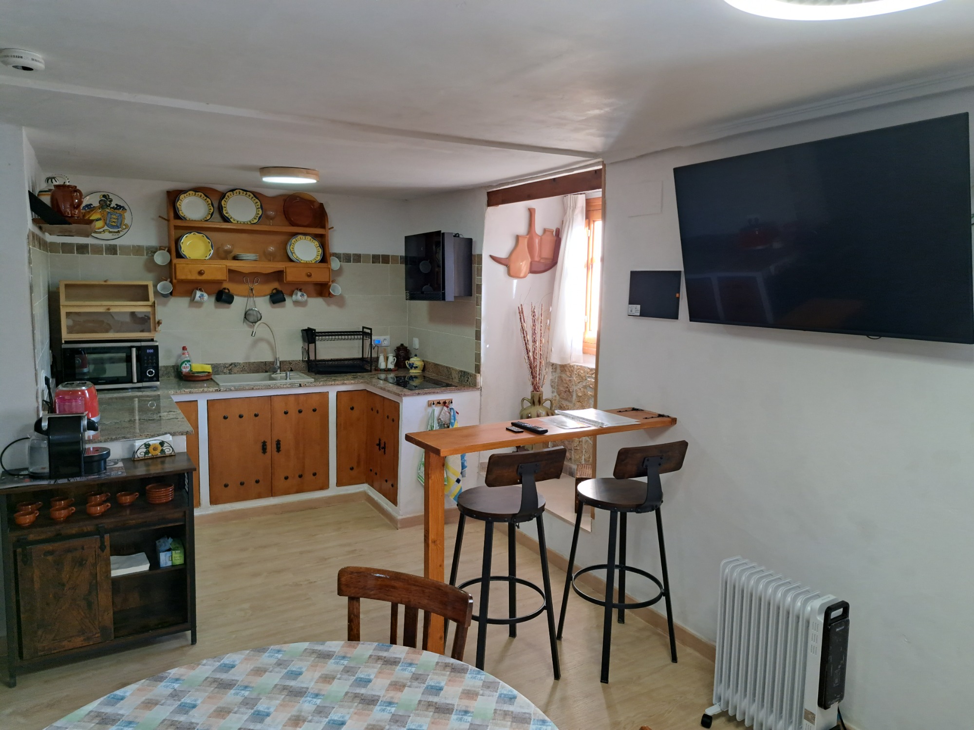 En el salón hay un sofá cama, televisor Smart Tv 50" y una barra tipo bar, para disfrutar de un aperitivo mientras ves la tele o cocinas.